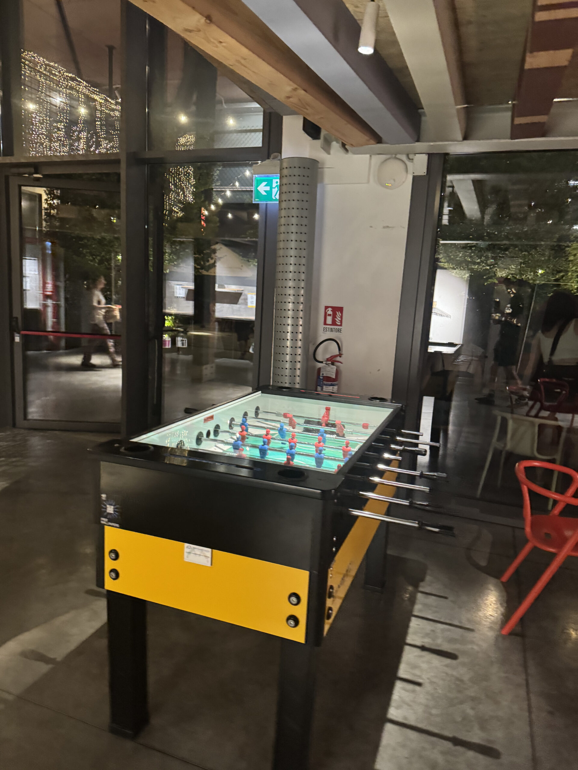 ダーツやフーズボール(サッカーゲーム)で盛り上がる人たちの笑い声。